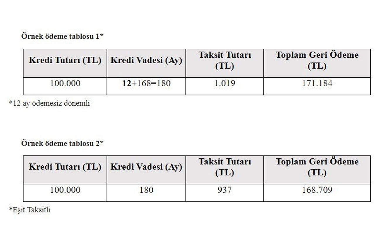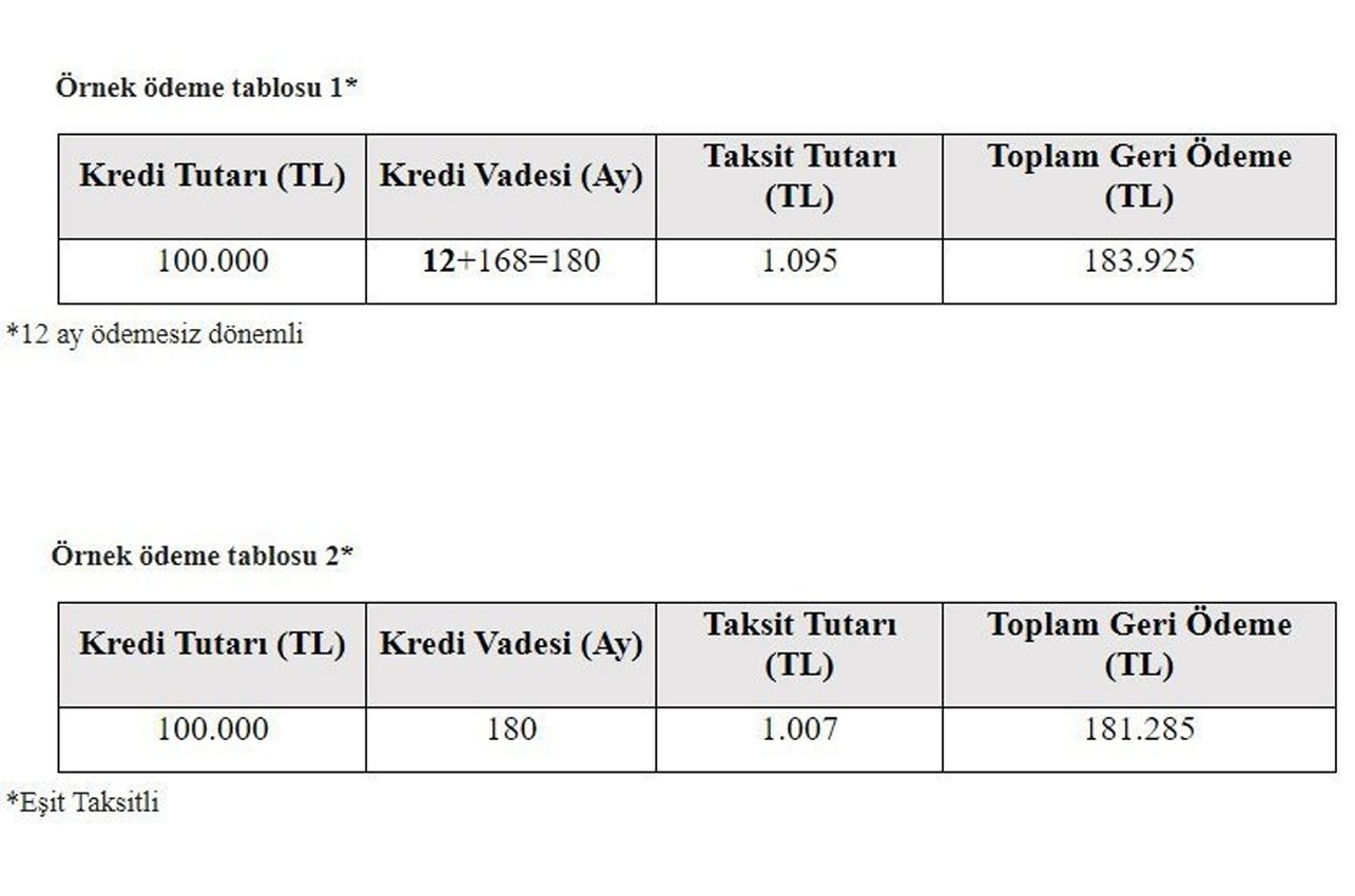 İkinci el konut satın almak için 100 bin TL kredi çeken bir vatandaş, 12 ay ödemesiz dönem seçeneğini kullanırsa 15 yıl bittiğinde toplamda 183 bin 925 TL'lik geri ödeme yapacak.