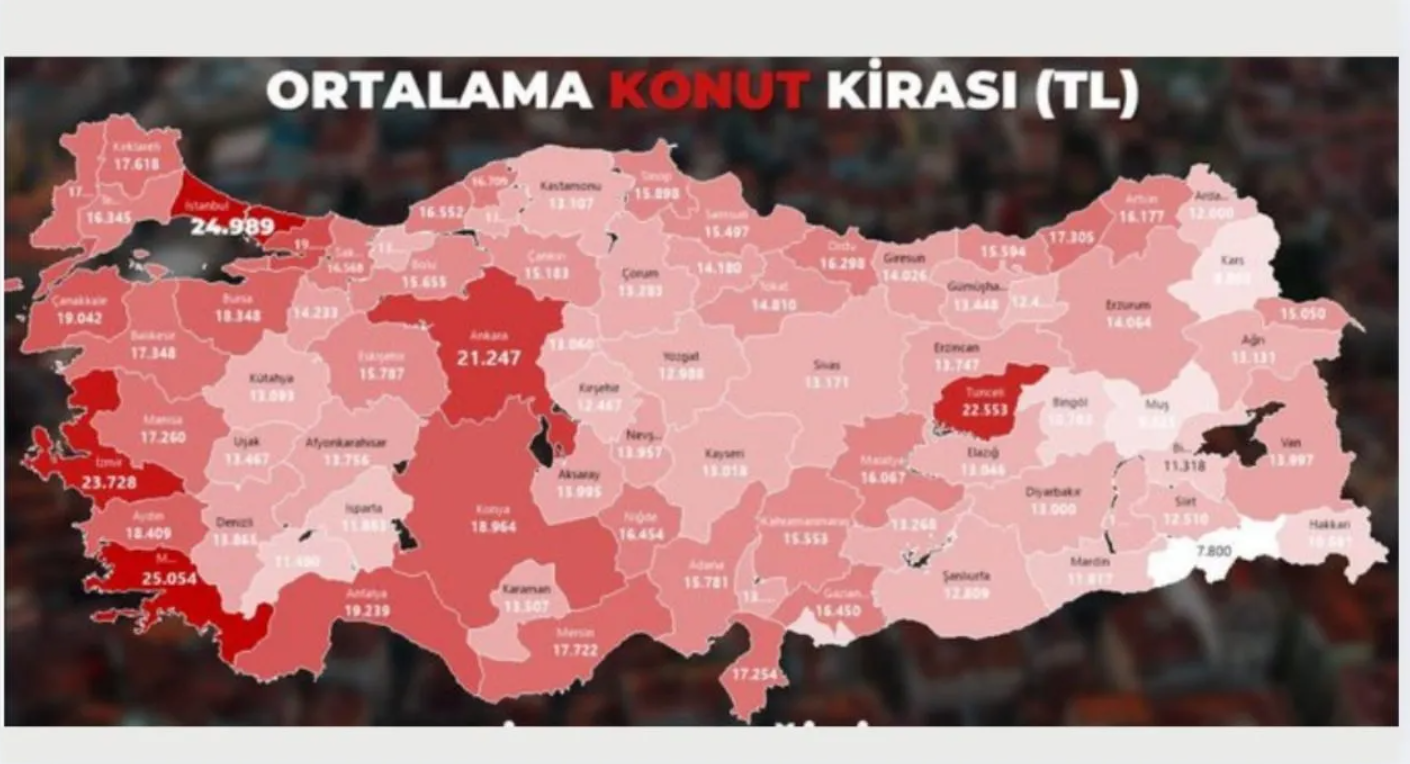 İstanbul'da ortalama konut kirası 24 bin 989, Ankara'da 21 bin 247, İzmir'de 23 bin 728 seviyesine çıktı.