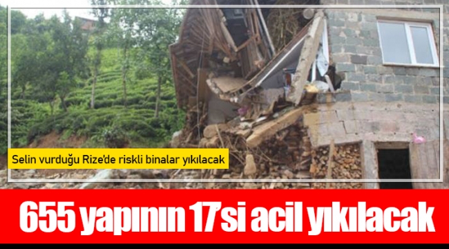 Rize'de, geçen ay 6 kişinin öldüğü, 2 kişinin kaybolduğu, alt ve üst yapıda hasara yol açan sel ve heyelan afetlerinin izleri silinmeye çalışılırken, kentte tehlike arz eden riskli yapılar için de yıkım hazırlığı başlatıldı. İncelemelerde dere yatağında riskli olduğu tespit edilen 655 yapıdan yüksek riskli 17 bina, acil yıkılacak. Acil yıkılacak binalar arasındaki bir yapının taşıyıcı kolanlarının dere yatağı üzerine kurulduğu ortaya çıktı. Yıkımlara kısa sürede başlanacağını belirten Vali Kemal Çeber, “20, 30, hatta 50 yılda bir bu yağış oluyor; olduğu zaman da her şeyi götürdüğünü gördük” dedi.