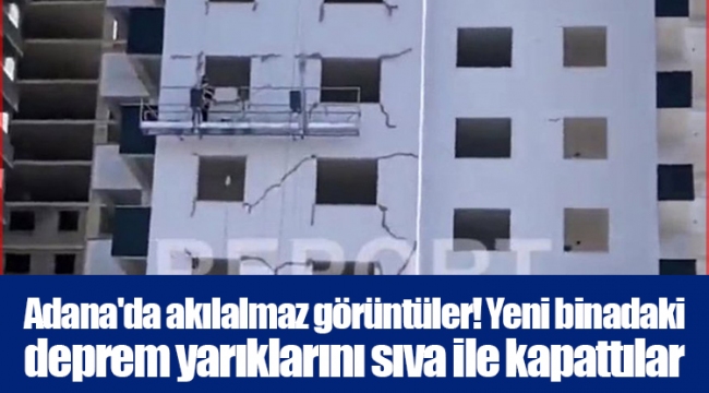 Adana'da akılalmaz görüntüler! Yeni binadaki deprem yarıklarını sıva ile kapattılar
