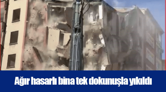 Ağır hasarlı bina tek dokunuşla yıkıldı