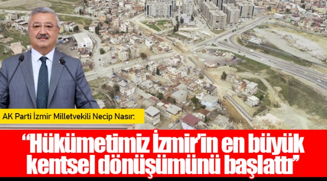 AK Parti İzmir Milletvekili Necip Nasır, sözlerini şu şekilde sürdürdü; ‘’Depremin ilk anından itibaren İzmirlinin yanında olan hükümetimiz, söz verdiği gibi İzmir’de tarihinin en büyük kentsel dönüşümünü başlatarak, bir yıl içinde, depremde evleri yıkılan vatandaşlarımızın evlerini modern mimarisi ile son deprem yönetmeliklerine göre yaparak teslim etmeye başlamış ve ilk 2 yılı ödemesiz 20 yıl vade ile sosyal devletin ne olduğunu bütün dünyaya göstermiştir. Hükümetimiz yüzde 70 dönüşüme muhtaç yapı stoğu olan İzmir’de, Kentsel Dönüşüm Daire Başkanlığını kurmuş, Belediyelerin olursa taleplerini hızlandırmak, vatandaşın sorunlarını çözmek için faaliyete geçirmiştir.’’ dedi.