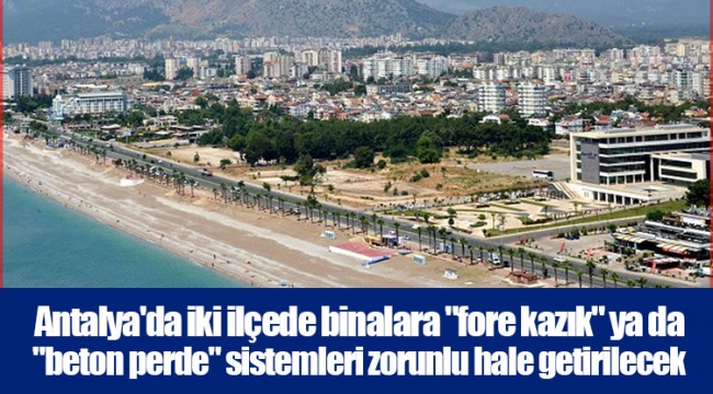 Antalya'da depreme karşı dayanıklı binalar için Konyaaltı Belediyesi "fore kazık", Muratpaşa Belediyesi ise "beton perde" sistemlerini zorunlu hale getiriyor.