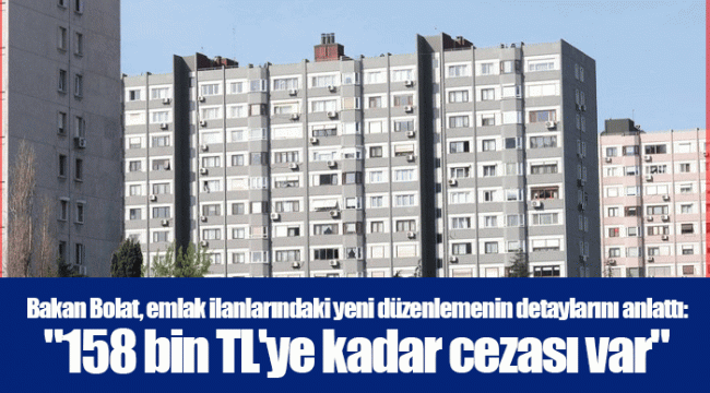 Ticaret Bakanı Ömer Bolat, emlakta doğrulanmış ilan sisteminin devreye alınmasıyla sıkı denetimler gerçekleştireceklerini belirterek, mevzuata aykırı hareket edenlere 158 bin 460 liraya kadar idari para cezası uygulanacağını bildirdi.