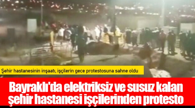 İzmir'in Bayraklı İlçesi'nde 2014 yılında temeli atılan, 30 ayda hizmete gireceği söylenen ancak açılışı 6 kez ertelenen şehir hastanesinin inşaatı, işçilerin gece protestosuna sahne oldu.