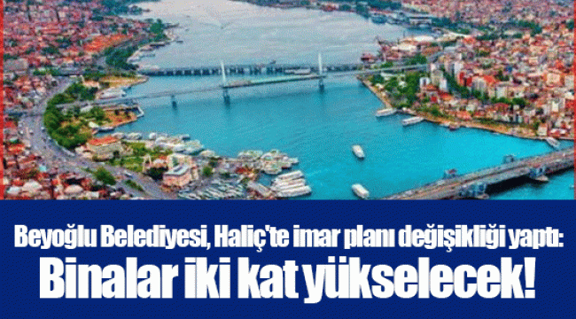 Beyoğlu Belediyesi, Haliç’in kıyı bölgesi için imar planı değişikliği yaptı. Bina yüksekliğinin ortalama dört kat olduğu bölgede altı katlı binalar yapılacak.