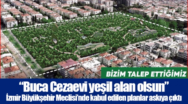 Buca cezaevi arazisinin tamamının yeşil alan olmasına dair İzmir Büyükşehir Belediye Meclisinin kabul ettiği imar planları bugün askıya çıktı.