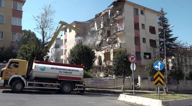 Büyükçekmece’de hasar gören binaların yıkımına devam edildi