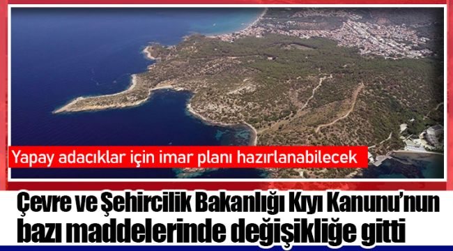 Çevre ve Şehircilik Bakanlığı Kıyı Kanunu’nun Uygulanmasına Dair Yönetmeliğin bazı maddelerinde değişikliğe gitti. Resmî Gazete’de yayımlanan, Kıyı Kenar Çizgisi ile ilgili olan Kısmi Yapılaşma tanımına ‘Barınak, Tonoz Sistemleri, Rekreatif Amaçlı İskele’ bölümleri de eklendi. TMMOB Mimarlar Odası İstanbul Büyükkent Şube Başkanı Esin Köymen, yapılan değişiklikle yapay adacıkların imara açılabileceğini belirtti.