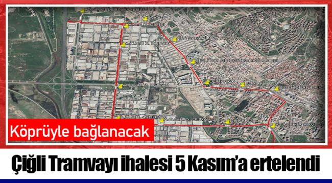 İzmir Büyükşehir Belediyesi Raylı Sistemler Daire Başkanlığı’nın düzenlediği Çiğli Tramvayı ihalesi, katılımcı 17 firmadan gelen başvuru üzerine ertelendi. 20 Ekim Salı günü teklif vermeleri gereken firmalar, ihalenin Kasım ayında yapılmasını istedi. Firmaların başvurusu kabul edildi ve ihale 5 Kasım’a ertelendi.