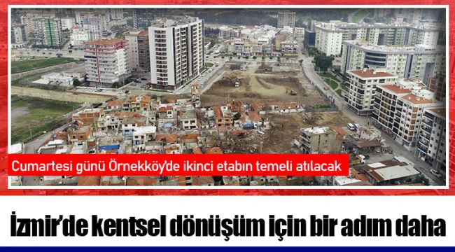 Örnekköy’de 18 hektar kentsel dönüşüm alanında birinci etapta 130 konut ve 13 işyerini hak sahiplerine teslim eden İzmir Büyükşehir Belediyesi, ikinci etap kapsamında 170 konut ve 20 işyeri için 13 Mart Cumartesi günü Cumhuriyet Halk Partisi (CHP) Genel Başkanı Kemal Kılıçdaroğlu’nun katılımıyla temel atmaya hazırlanıyor. Saat 9.30’da başlayacak temel atma töreninin ardından CHP Genel Başkanı Kılıçdaroğlu, “Yaşanabilir Kentsel Dönüşüm Çalıştayı”na katılacak. Karşıyaka Deniz Baykal Kültür Merkezi’nde saat 10.30’da başlayacak çalıştayın açılış konuşmalarını İzmir Büyükşehir Belediye Başkanı Tunç Soyer, CHP Parti Meclisi Üyesi Ahmet Akın ve Genel Başkan Kemal Kılıçdaroğlu yapacak.
