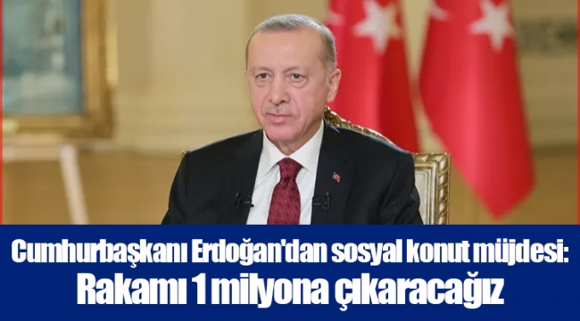Geçen hafta yapılan kabine toplantısının ardından ikinci bir etabı seçimlerden sonra başlatabileceklerini açıkladığını hatırlatan Erdoğan, "Fakat şimdi şartlar bizi öyle zorluyor ki hiç olmazsa şimdi şu arsa ama arsanın da tabii altyapısını yaparak bunları verelim. Bunu da vatandaşımız kendisi yapsın. Tabii şimdi biz 500 bin sosyal konuta bir defa süratle başlayalım, bir taraftan bu arsalara vatandaşımız altyapısı yapılmış olarak gelsin girsin, o da kendi konutunu yapsın. Böylece 1,5 milyon oluyor. Biz şimdi bu arsaların adedini artırırsak, ha arttırmayı düşünüyoruz. Az önce de söyledim 1 milyon 175 bin toplu konutu biz yaptık, başkası değil. Daha önce de söyledik. Yani parasal olarak bizim bir sıkıntımız yok ve biz bunları yaparız." diye konuştu.