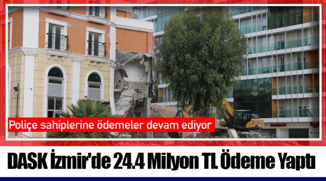 DASK'ın İzmir dahil depremden etkilenen 14 ilden aldığı hasar ihbarı sayısı, 12 Kasım itibariyle 17 bin 500'e ulaşırken, poliçe sahiplerine depremde hasar gören konutları için toplam 24,4 milyon lira ödeme yapıldı.