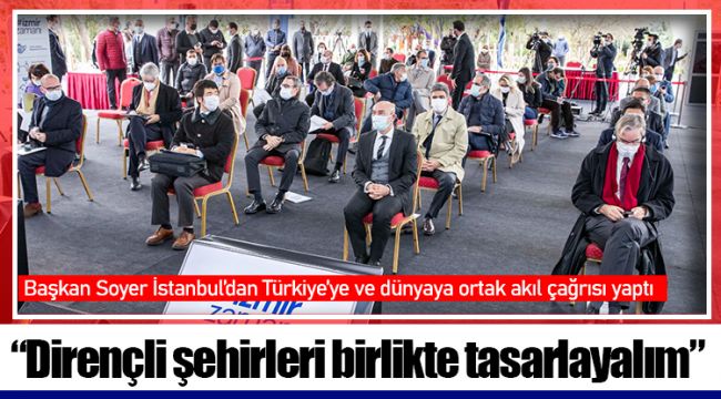 Başkan Soyer doğa olaylarının yıkıcı felaketlere dönüşmesini beklemeden birleşme çağrısı yaparak sözlerine şöyle devam etti: “Yaşam hakkının güvence altında olduğu bir şehir iklimi yaratmak için İzmir’de bir düşünce meydanı oluşturalım. Zaten dünya çok kırılgan, devasa küresel sorunlarımız var. Bu sorunlarla ancak dayanışmamızı büyüterek başa çıkabiliriz. Bu niyetlerimizi paylaşan herkesi, sosyal ve ekonomik girişimcileri, daha dirençli bir şehir, bir Türkiye, bir dünya yaratmak için İzmir’e katılmaya davet ediyorum.”