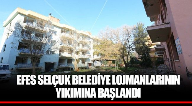 Efes Selçuk Belediye Lojmanlarının yıkım süreci başladı. 2018 yılında depreme dayanıklı olmadığı gerekçesiyle boşaltılan belediye lojmanlarının yıkımı , gerekli resmi süreçlerin sona ermesi ve yıkım ruhsatı alınmasının ardından yüklenici firma tarafından gerçekleştiriliyor.
