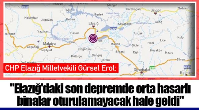 CHP Elazığ Milletvekili Gürsel Erol, kentte son meydana gelen 5,3 büyüklüğündeki depremin ardından orta hasarlı binaların oturulamayacak hale geldiğini, bu binaların ağır hasarlı ilan edilerek yıkılması gerektiğini belirtti.