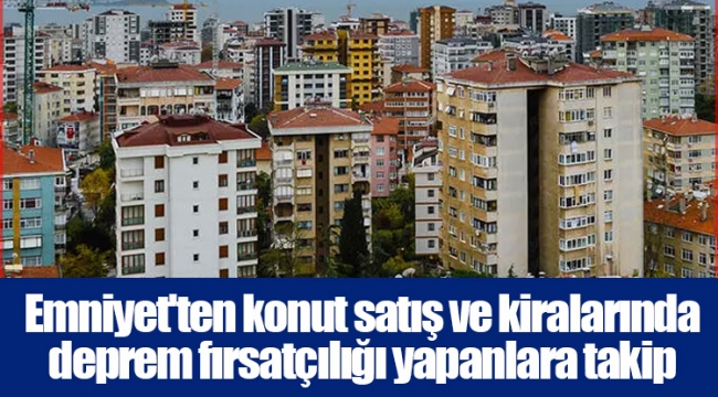 Ankara Emniyet Müdürlüğü Mali Suçlarla Mücadele Şube Müdürlüğü ekipleri Kahramanmaraş merkezli depremlerin ardından konut satışı ve kiralamada rayiç bedellerin üzerinde kalan ilanların sahipleri, sözleşmeye taraf mülk sahibi ile aracılar hakkında "şüpheli" sıfatıyla işlem yapacak.
