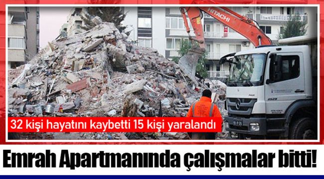 Sabahın ilk ışıklarına kadar enkaz altında nefes arayan ekipler, 14 yaşındaki İdil'in ardında enkazdan sevdirici haber gelmedi. Sabaha karşı çıkartılan 1 kişinin cansız bedeniyle Emrah Apartmanı'nda çalışmalar sonlandırıldı. Çalışmalar kapsamında Emrah Apartmanı'nda 15 kişi enkazdan yaralı olarak çıkartılırken, 32 kişi de hayatını kaybetti. AFAD koordinasyonunda gerçekleştirilen çalışmaların tamamlanmasının ardından enkazda arama ve kurtarma çalışmasına katılan tüm ekipler enkazdan çekilerek görevi belediye ekiplerine bıraktı. Belediye ekipleri de 32 kişiye mezar olan ve moloz yığınına dönüşen inşaatın enkazını kaldırmak için çalışmalarına başlanacağı öğrenildi.