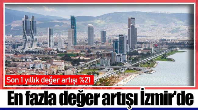 En fazla konut satışı olan iller içerisinde en fazla değer artışı İzmir’de oldu. İzmir’de konut fiyatlarında son 1 yıllık değer artışı %21, ortalama konut metrekare satış fiyatı 3 bin 381 TL, ortalama konut fiyatı 423 bin 375 TL, konut yatırımının geri dönüş süresi ise 21 yıl oldu.
