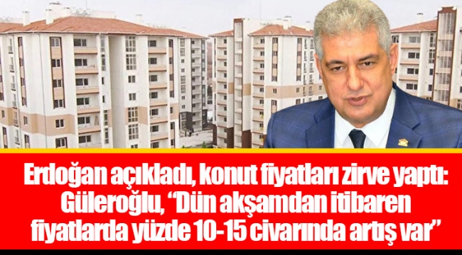 Erdoğan açıkladı, konut fiyatları zirve yaptı: Güleroğlu, “Dün akşamdan itibaren fiyatlarda yüzde 10-15 civarında artış var”