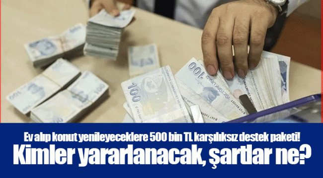 Aile ve Sosyal Hizmetler Bakanlığı, ev almak isteyenlere ve konutlarını onarmak isteyenlere yönelik 500 bin TL'lik yeni destek paketini duyurdu. Bu destek paketi, ev alacaklarına büyük olanaklar sunuyor. Paket kapsamında, ev alacaklarına 500 bin TL'ye kadar karşılıksız destek verilecek. Ayrıca, konutlarını onarmak isteyenlere de çeşitli miktarlarda yardımlar yapılacak. Bu yardımlar arasında 35 bin, 70 bin, 100 bin ve 300 bin TL gibi seçenekler bulunuyor.
