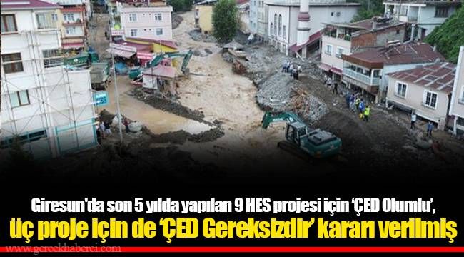 Giresun'da ağırlıklı olarak Dereli ilçesinde etkili olan sel felaketi, Karadeniz’de neredeyse her derenin üzerine kurulan hidroelektrik santralları (HES) gündeme getirdi. Kentte son beş yılda dokuz HES projesi için ‘Çevresel Etki Değerlendirmesi (ÇED) Olumlu’ kararı çıktı. Tek bir proje için ‘ÇED Olumsuz’ kararı verilmezken üç proje için ÇED istenmedi.