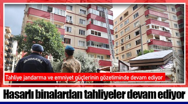 İzmir’deki depremin ardından evlerinde hasar olan vatandaşların tahliyesi polis ve jandarma ekiplerinin gözetiminde tüm hızıyla devam ediyor.