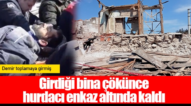 Olay bugün saat 14.30 sıralarında Namık Kemal Mahallesi 425 sokakta bulunan metruk bir binada meydana geldi. Bir süredir kolonlardaki demirleri almak için sokakta bulunan metruk binaya girdiği ileri sürülen hurdacı Erdal Özgün (34), binanın bir anda çökmesi üzerine enkaz altında kaldı. Gürültüyü duyan mahalle sakinleri durumu ekiplere bildirirken, olay yerine AKS, sağlık ve polis ekipleri sevk edildi. Enkaz altında kalan Özgün, AKS ekipleri tarafından enkazdan çıkartılırken, yaralı olduğu belirlenen adam sağlık ekipleri tarafından ambulansla hastaneye kaldırıldı. Burada tedavi altına alınan Erdal Özgün'ün hayati tehlikesinin bulunmadığı öğrenildi.