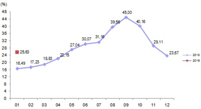 İnşaat maliyet endeksi, yıllık değişim oranı, Ocak 2019