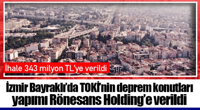 Temeli 22 Şubat’ta düzenlenen törenle AKP’li Cumhurbaşkanı Recep Tayyip Erdoğan tarafından atılan İzmir Bayraklı’daki deprem konutlarının ihalesi tamamlandı. Deprem konutları ihalesi Beştepe ve Okluk Koyu’ndaki Cumhurbaşkanlığı Saraylarının müteahhidi olan, ayrıca çok sayıdaki şehir hastanesini de işleten Rönesans Holding’e verildi.