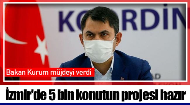 Çevre ve Şehircilik Bakanı Murat Kurum, İzmir depremi sonrasında yapılan kentsel dönüşüm çalışmaları kapsamında bugün itibarıyla 5 bin konutun projelerini hazırladıklarını söyledi.