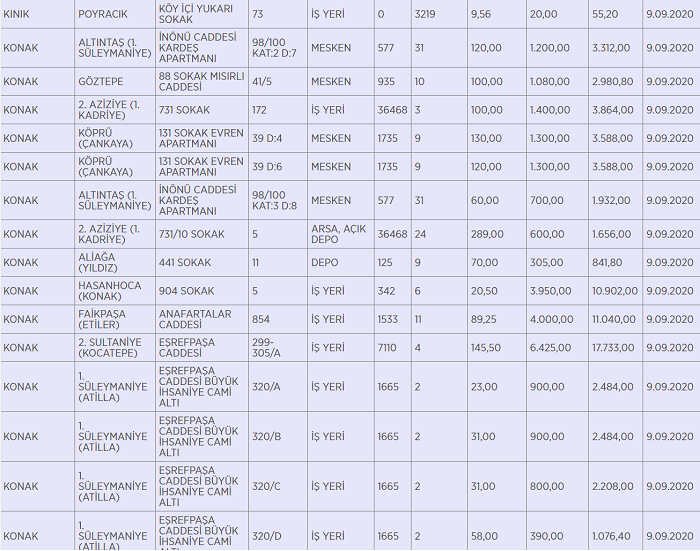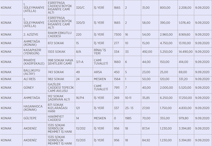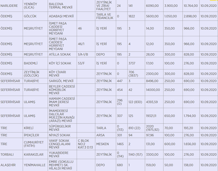 İzmir Vakıflar Bölge Müdürlüğü, mülkiyetindeki 151 adet gayrimenkulü açık artırma ihale usulüyle kiraya verecek. İzmir ve Manisa'da yer alan gayrimenkuller 2021 yılının sonuna kadar kiraya verilecek. İhalesi 9-10 eylül tarihinde gerçekleşecek.
