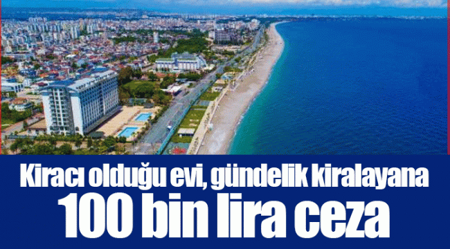 "İzin belgesi sahibinden kiraladığı turizm amaçlı konutu, kendi ve hesabına üçüncü kişilere kiraya verenler hakkında her bir sözleşme için 100 bin lira idari para cezası uygulanacak. Kendi adına mesken olarak kullanmak amacıyla kiraladığı konutu, turizm amaçlı kiraya verenler ile izin belgesi olmayan konutların turizm amaçlı kiralanmasına aracılık edenler hakkında, her bir sözleşme için 100 bin lira idari para cezası verilecek. İzin belgesi bulunmaksızın turizm amaçlı kiralama faaliyetlerine devam edenler ile her defasında 100 günden fazla süreli kira sözleşmesi yapmasına rağmen ilk sözleşme tarihinden itibaren 1 yıl içinde aynı konutu 4 defadan fazla kiraya verenler hakkında 1 milyon lira idari para cezası verilecek."