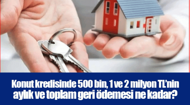 Akbank'taki bu konut kredisi faiz oranı dikkate alınırsa 500 bin, 1 milyon ve 2 milyon TL'nin 120 ay vade için aylık ve toplam geri ödemesi şöyle: