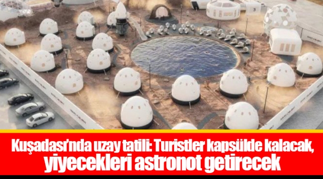 Kuşadası’nda Mars’a benzeyen yüzey oluşturulacak. Ziyaretçilerin kapsül şeklinde tasarlanmış odalarda kalıp, astronot yiyecekleriyle besleneceği bölgeye, günde 120 bin turistin çekilmesi hedefleniyor. Yılda 1,2 milyon kişinin ziyaret ettiği turizm gözdelerimizden Kuşadası’nda gerçekleştirilecek olan bu proje; Y ve Z kuşağını hedefliyor.