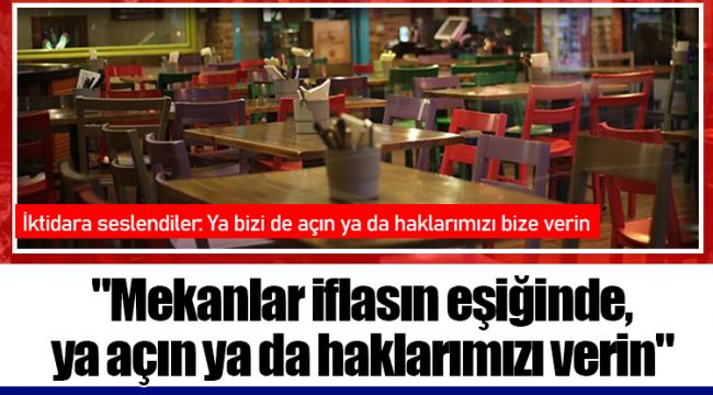 Açıklamada, mekânların kapalı olmasına rağmen kira ödemek durumunda bırakıldıkları ifade edildi: “Kapalı olmamıza ve para kazanamamıza rağmen doğalgaz-elektrik ve su faturaları gelmeye devam ediyor. Ödeyemezsek aboneliklerimiz iptal ediliyor. Aboneliğini dondurmaya çalışanlardan ise kapalı kaldıkları kadar ayın haracı talep ediliyor. Beklediğimiz destek, ‘esnafa sahip çıkılması, sahip çıkılamıyorsa da mekânların açılması.’ Emin olun bizler AVM'ler ya da kayak merkezleri kadar toplum sağlığına tehlike değiliz. Kafe-Bar-Restoran Çalışanları ve İşletmecilerinin özlük haklarının düzeltilmeli. Sabah 5 e kadar açık tutulabilen bar ruhsatlı mekânlar üzerinden yapılan mekan statüsü ayrımcılığına son verilmeli.”
