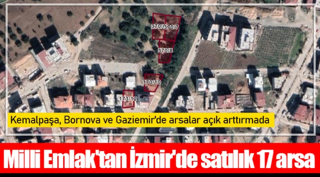 İzmir Çevre ve Şehircilik İl Müdürlüğü Milli Emlak Dairesi Kemalpaşa'da 15, Bornova ve Gaziemir'de 1'er adet arsayı açık artırmayla satışa sundu. Satışa çıkarılan arsaların toplam muhammen bedeli 12 milyon 163 bin TL olarak belirlendi. İhalesi 25-26-27 ekimde gerçekleşecek.