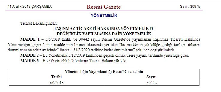 TAŞINMAZ TİCARETİ HAKKINDA YÖNETMELİK 2020 İÇİN GERİ SAYIM BAŞLADI
