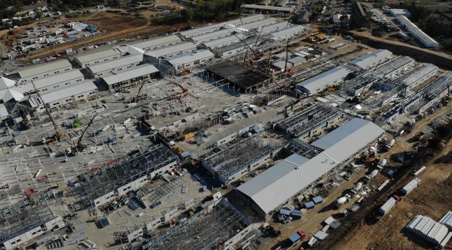 Sancaktepe’de duvar ve çatıları yerleştirilmeye başlanan pandemi hastanesi havadan görüntülendi
