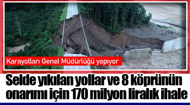 Karayolları Genel Müdürlüğü, Giresun’da ağustos ayında meydana gelen sel felaketinde zarar gören yollar ile yıkılan sekiz köprünün onarımı için 170 milyon TL’lik ihale düzenledi.