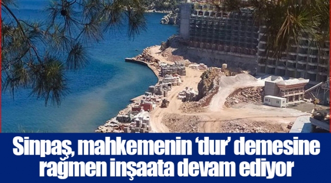 Muğla Kızılbük’te mahkemenin ‘dur’ demesine rağmen Sinpaş’ın otel projesi inşaatına devam ettiği ortaya çıktı. Marmaris Kent Konseyi’nden Halime Şaman, “Bu talanı mutlaka durduracağız” dedi.