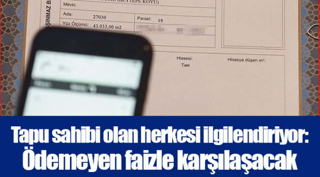 Tapu sahiplerinin belirtilen tarih aralığında vergi ödemelerini gerçekleştirmemeleri durumunda aylık yüzde 4,5 oranında gecikme faizi uygulanacak.