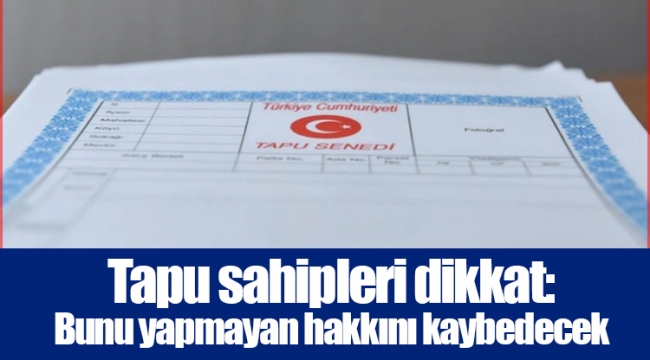 Tapu sahiplerine yapılan uyarıda belirlenen hakkın kullanılması için verilen süre 3 ay (90 gün) olarak belirlendi. Sürenin aşımı durumunda ise kişiler haklarını kaybediyor. Yapılan açıklamalara göre hisseli tapuda şufa yani ön alım hakkı tanınır.