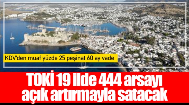 Toplu Konut İdaresi Başkanlığı, açık artırma yöntemi ile 19 ilde 444 arsayı açık artırma yöntemi ile satışa sunacak.