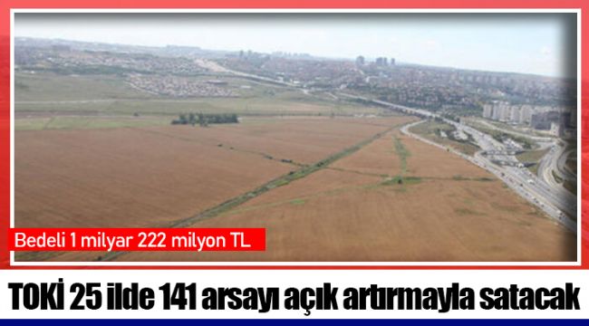 Çevre ve Şehircilik Bakanlığı Toplu Konut İdaresi Başkanlığı (TOKİ) Ankara, İstanbul ve İzmir'in de aralarında bulunduğu 25 ildeki 141 arsayı satışa, Osmaniye ve Konya'daki 3 arsayı da kiraya sundu.