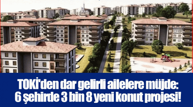 TOKİ, dar gelirli aileleri ev sahibi yapmak için 6 yeni proje başlatıyor. Bilecik, Artvin, Bolu, Bingöl, Kayseri ve Burdur'da gerçekleşecek projelerle 3 bin 8 aileye umut olacak.