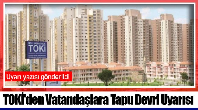TOKİ’den yapılan yazılı açıklamada, ilgili bankalar aracılığıyla “Gayrimenkul Satış Sözleşmesi” karşılığı satın alınmış, borcunun bitmesine rağmen tapu kaydını üzerine almayan vatandaşların, tapu devir işlemlerini 30 gün içinde tamamlamaları gerektiği bildirildi.
