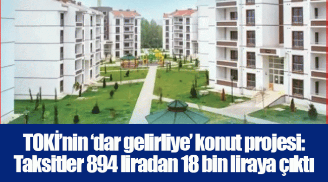 En düşük peşinat bedeli 275 bin lira olan TOKİ konutlarının vadesi 240 aydan 180 aya düşürüldü. Aynı zamanda 300 bin TL gibi sözü verilen konutlar şu an 3 milyon TL’den fazla fiyatlara satılacak. Bu doğrultuda hak sahiplerinin her ay ödeyeceği taksit ise 13 bin ile 18 bin lira arasında olacak. Bu tutar, her sene memur maaşına gelecek zam oranında artacak.