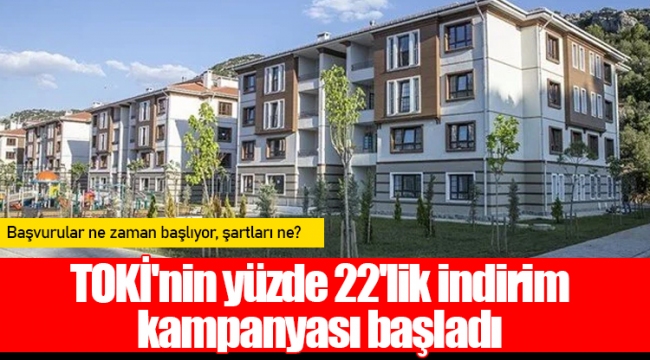 TOKİ, konut ve iş yeri sahiplerine yönelik yeni bir indirim kampanyası başlattı. Borcunu kapatmak ya da en az yüzde 25'ini ödemek isteyenlere yüzde 22 indirim uygulanacak. Bugün başlayan başvurular 19 Nisan'da sona erecek.