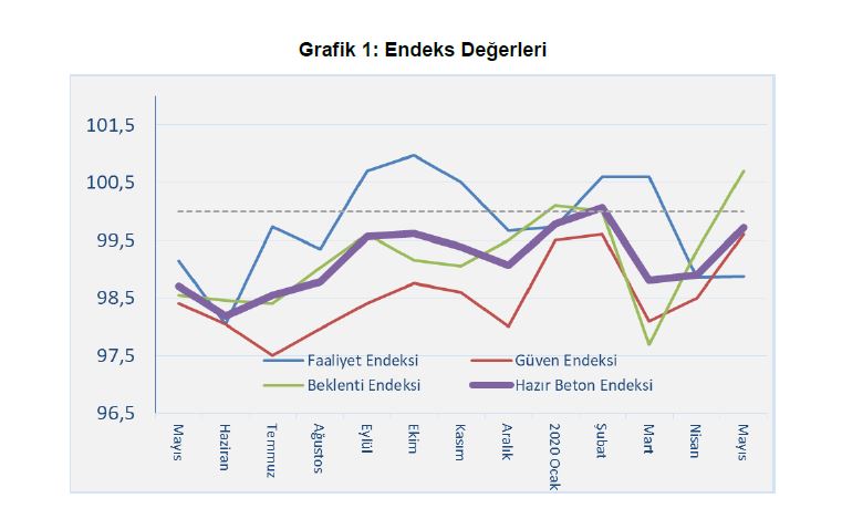 Türkiye Hazır Beton Birliği (THBB), her ay merakla beklenen inşaat ve bununla bağlantılı imalat ve hizmet sektörlerindeki mevcut durum ile beklenen gelişmeleri ortaya koyan “Hazır Beton Endeksi” 2020 Mayıs Ayı Raporu’nu açıkladı. Mayıs ayında, inşaat faaliyetleri korona virüsü pandemisi nedeniyle düşük seviyede devam ederken normalleşmeye dönük takvim ile birlikte endeks, önümüzdeki aylara yönelik beklentinin önemli oranda arttığını ortaya koydu. Beklentideki bu yükselişin yanında Güven Endeksi de kısmi bir yükselme sürecine girdi.